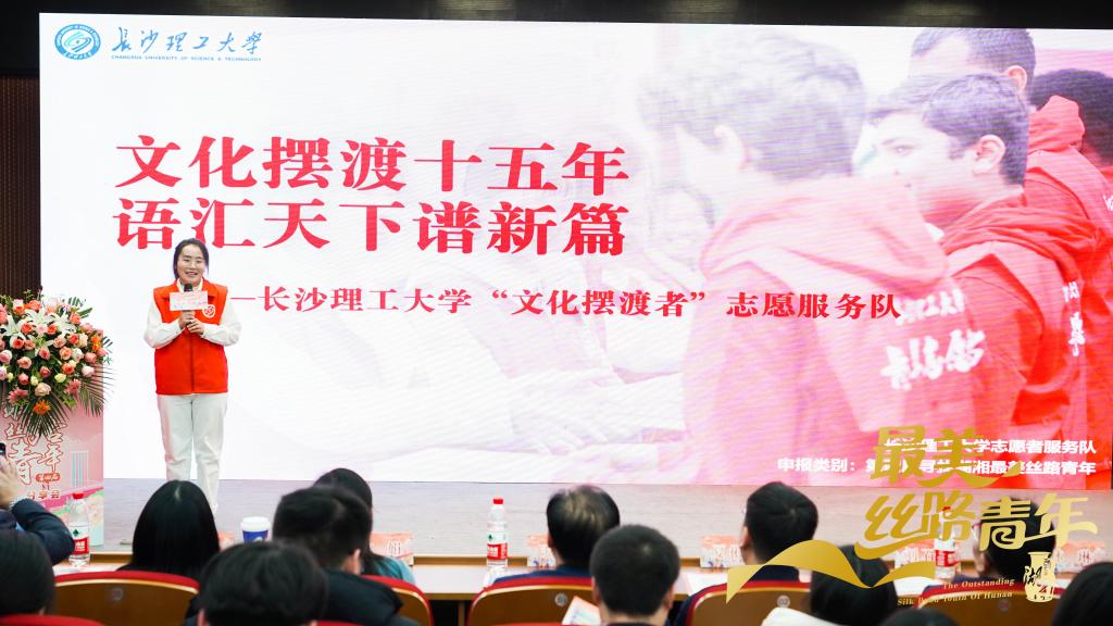 团省委副书记夏彬华、省工商联二级巡视员刘石鼎、中南林业科技大学副校长尹健出席本次活动。在此次评选中,经过层层选拔,永利官网“文化摆渡者”志愿者服务队获评集体奖项。分享会上,团队负责人、外国语学院2022级本科生张婷作为代表做《文化摆渡十五年,语汇天下谱新篇》主题分享。