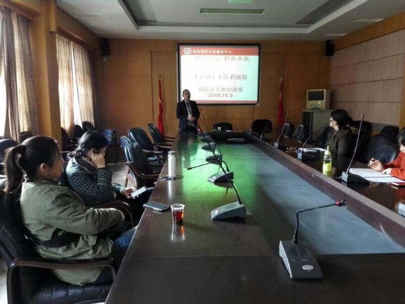 档案安全是档案工作的底线,是档案事业的根基,是有效开展档案利用的前提与基础。为进一步强化职工安全意识,提升安全防护技能, 2018年11月9日下午,档案馆邀请湘安消防培训员蒋先智在金办大楼二会议室,为全体工作人员上了一场生动的消防安全培训课。教员用鲜活的案例为大家讲授了消防安全知识,介绍了多种常见的消防器材使用方法。通过培训,大家强化了消防安全意识,进一步明确了档案安全要务。