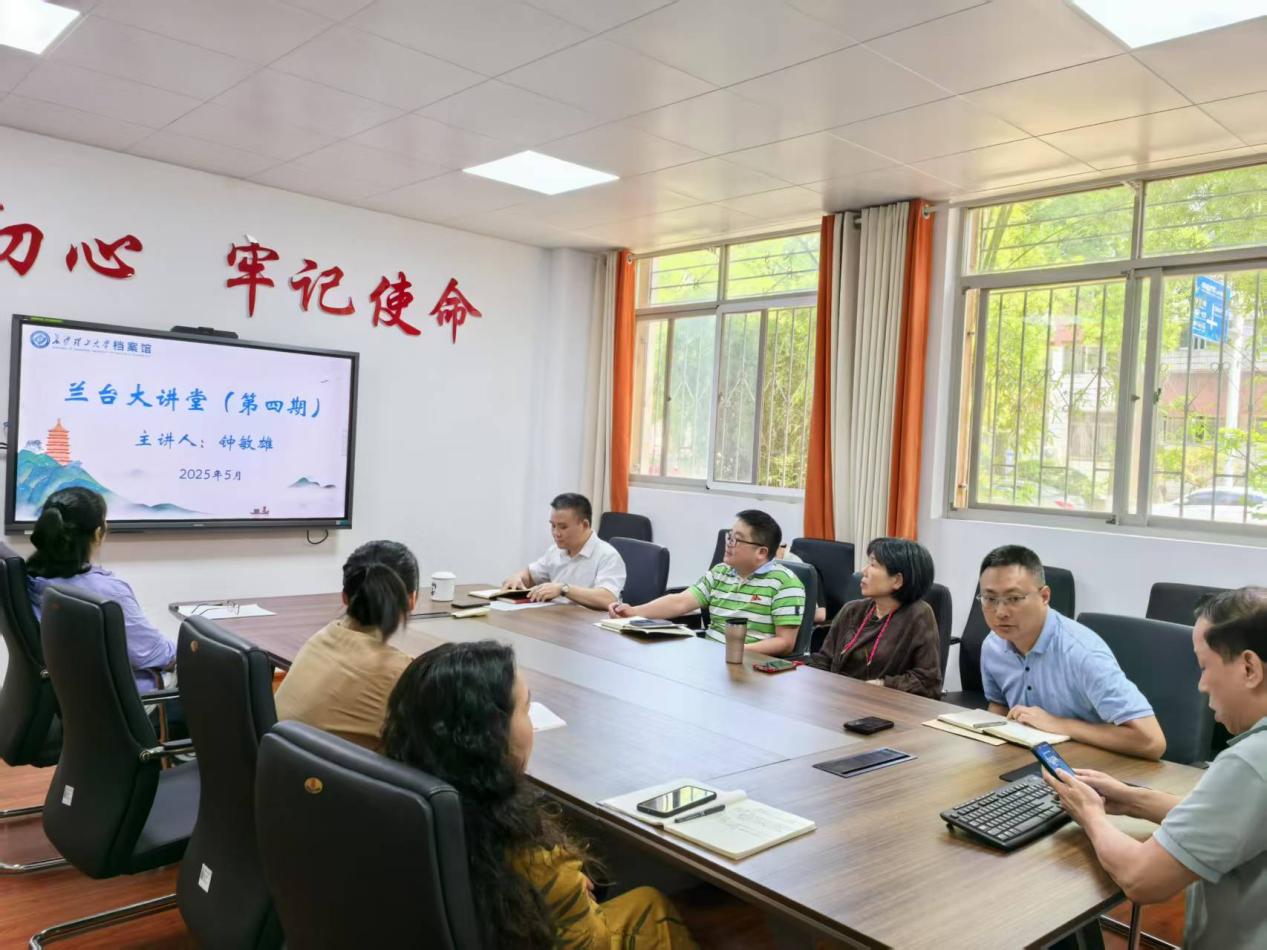 513日,档案馆开展了第四期“兰台大讲堂”活动,围绕电子档案管理新要求、新探索、新实践开展业务学习。活动由副馆长王任飞主持,全馆教职工参加。