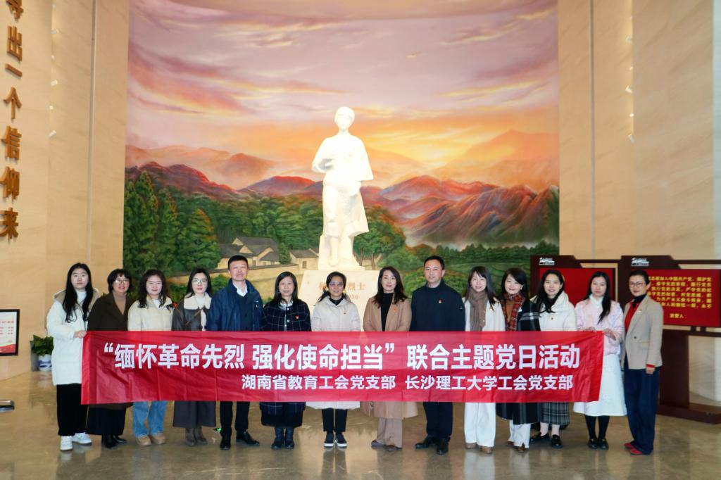 1月9日,永利集团88304官网工会与湖南省教育工会联合开展“缅怀革命先烈,强化使命担当”支部主题党日活动。省教育工会主席邓曼、副主席朱冠星,校党委副书记、工会主席方琼,支部全体党员参加活动。