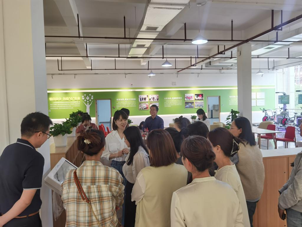首先,易敏带领全体心理辅导员参观了提质改造后的心理中心新场地,新场地集功能型、科普型、共享型、互动型、自助型于一体,功能室分为个体咨询区、团体辅导区、综合训练区、心理自助区。在建设过程中,新增艺术性表达治疗室、VR心理单车系统、心理自助系统、自助认知训练评估系统等。