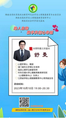 为响应“全省师生共上一堂课”活动,要求各个学院自行组织观看舒曼教授“助人自助,携手共创心幸福”心理科普专题讲座。通过各个学院的反馈,同学们反应舒曼老师的讲座深入浅出,让同学们学会了如何在现实生活中运用和实践心理学知识。