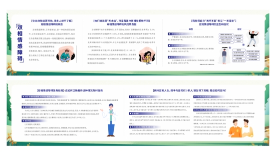 在活动现场,我们设置了多个知识展牌,用醒目的字体和形象的图片,引起了同学的关注。展牌内容涵盖了双相情感障碍知识的方方面面,包括双相情感障碍的概念、风险、治疗等,向同学们传递精神卫生知识和相关信息。通过展示这些知识点,引导同学关注和了解精神卫生问题,提高了精神卫生意识。