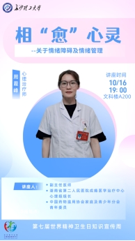 学校组织开展第七届精神卫生知识宣传周相关活动,以“相‘愈’心灵,向阳而生”为主题开展了3项校级活动。截至10月18日共有约2500余人次参与,其中心理健康教育讲座覆盖22个学院,由各个学院组织学院学生进行统一观看;精神卫生知识科普宣传广场游园会吸引到了500余人现场参与互动;精神卫生知识专题讲座共有各学院学生代表共300余人到现场观看,讲座满意率高达98%。