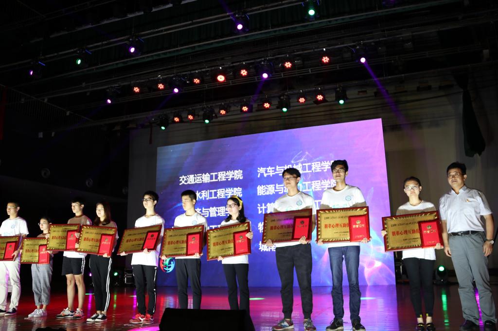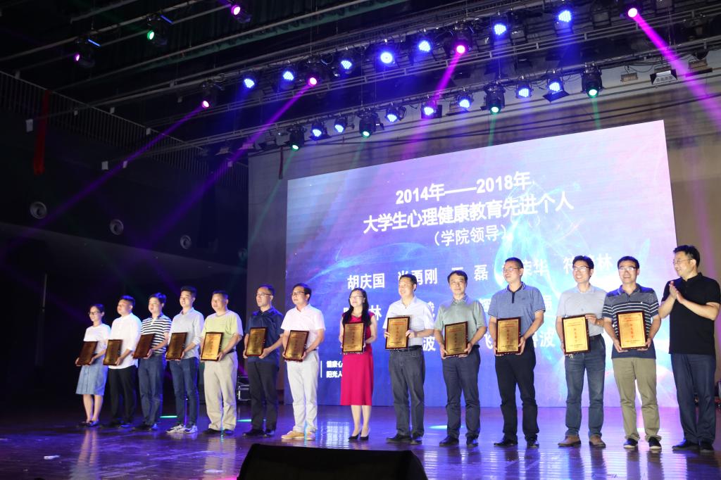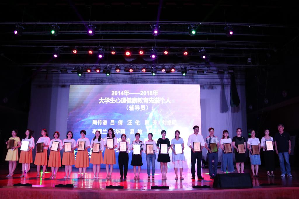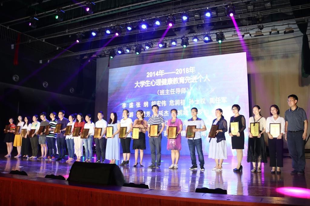 晚会上,授予10个学院“2014-2018年永利集团88304官网大学生心理健康教育工作优秀集体”称号;授予13名二级学院领导、24名班主任和研究生导师、20名辅导员“2014-2018年永利集团88304官网大学生心理健康教育工作先进个人”称号;同时还授予10个学院的朋辈心理互助组织“阳光团队”称号,107名朋辈心理互助员“阳光朋辈”称号。