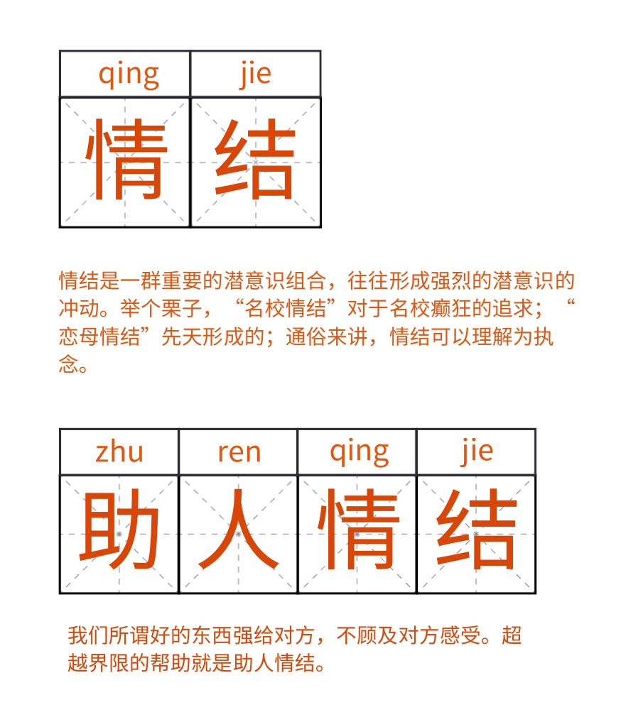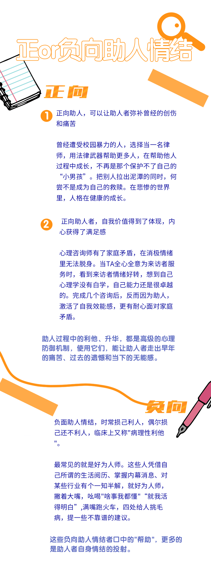 无论哪一种上升到情结,就是超越了助人的界限,助人行为过度了。