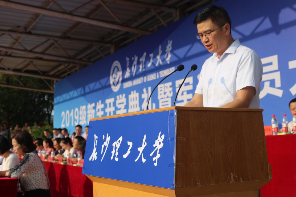9月9日上午,永利集团88304官网2019级本科新生开学典礼暨军训动员大会在金盆岭校区田径场隆重举行。校长曹一家,校党委副书记邹宏如,副校长黄立宏、谈传生,纪委书记胡永乐,副校长蒋昌波、刘扬,党委委员付嫦娥、齐路良、方琼出席,职能部门负责人、学院党政主要负责人、2019级新生辅导员及全体2019级本科生参加了大会。开学典礼暨军训动员大会由副校长谈传生主持。