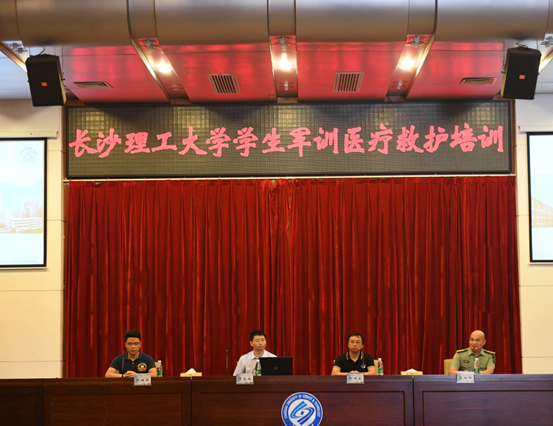 为普及应急医疗知识,使师生学习和掌握应急救护技能,提高自救互救能力,有效预防和应对学生军训中的急救问题和其他各种风险,确保2019级新生军训工作圆满顺利完成。8月21日下午,学校人民武装部特邀请中南大学湘雅附二医院急诊医学科副主任贺志飚博士,邱双发博士、刘继强博士三位专家在永利官网云塘校区图书馆报告厅举行学生军训医疗救护专题培训,永利官网民兵连全体带训教官和2019级新生辅导员参加了此次培训。