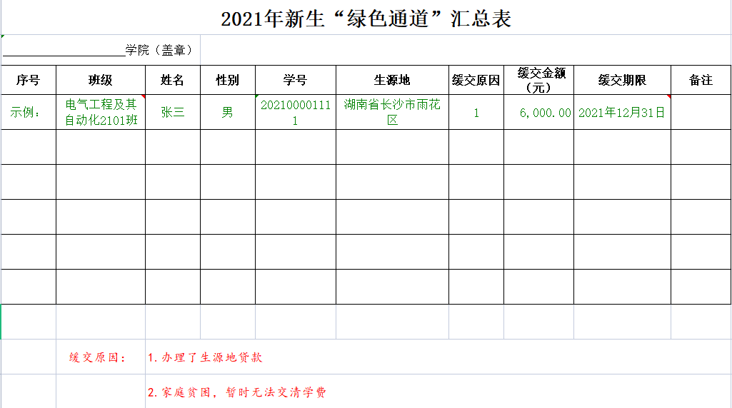 2021年新生“绿色通道”汇总表(下载)