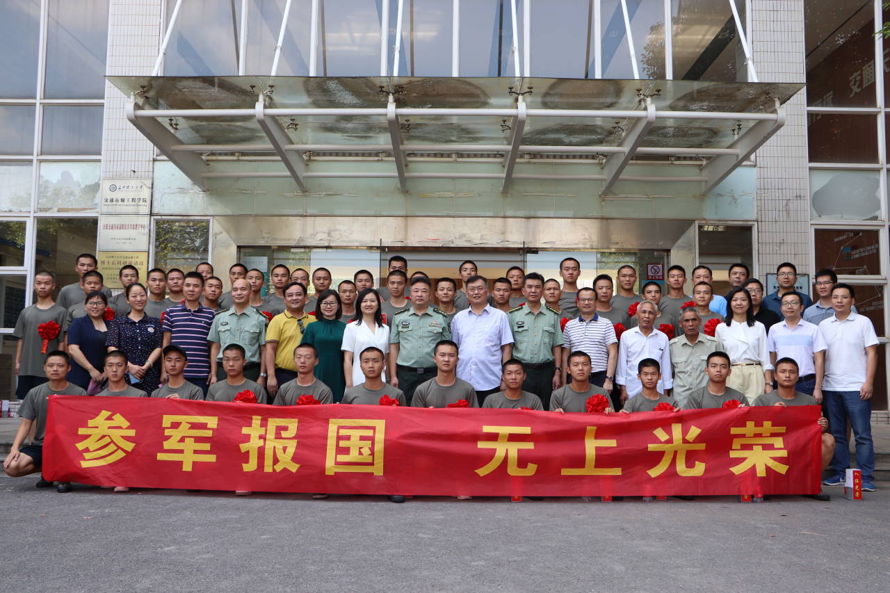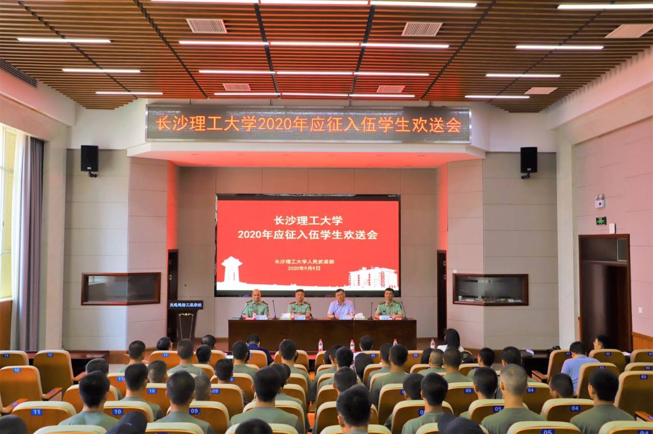 9月9日下午,永利官网2020年参军学生欢送会在交通学院科技报告厅隆重举行。副校长谈传生、长沙市天心区人民武装部部长周永顺,以及永利官网学工部、人民武装部、各院系党委副书记出席,为从天心区入伍的45名大学生送行。