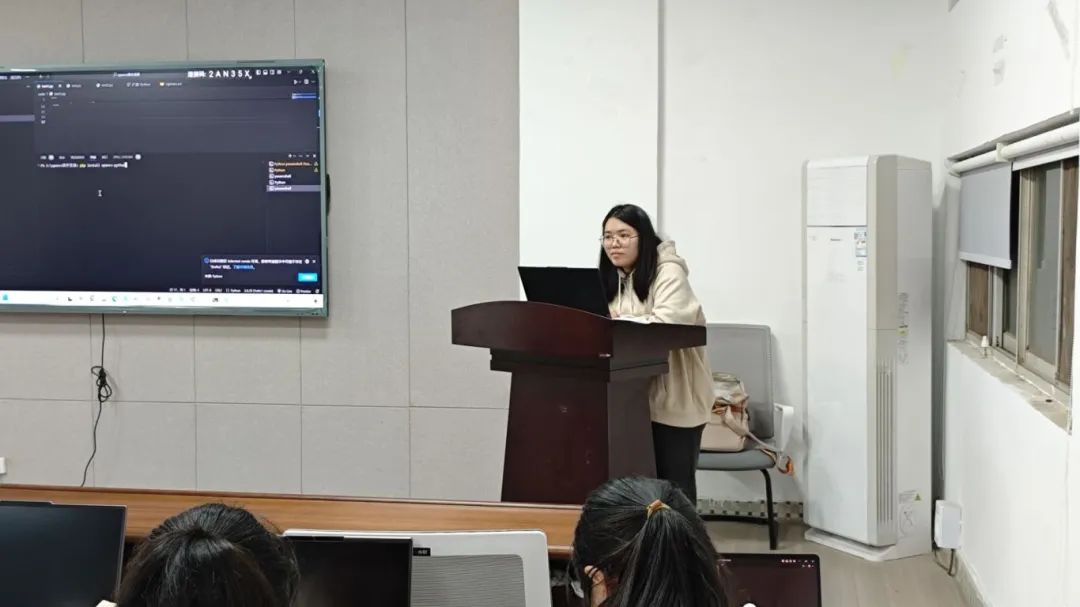 胡永恒首先教导大家如何安装并配置Python环境,随后在现场演示编写Python代码,引领大家一步步进入编程实战环节,完成代码编写后,她通过细致分析题目,对代码的逻辑、结构以及可能存在的问题进行了详尽的讲解,确保同学们能深入理解并掌握所学知识。此外,胡永恒还深入剖析了当前人工智能的发展现状,以此激励大家积极地投入到Python的学习中,不断探索这一领域的无限可能。