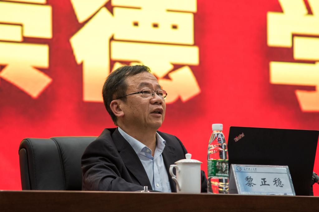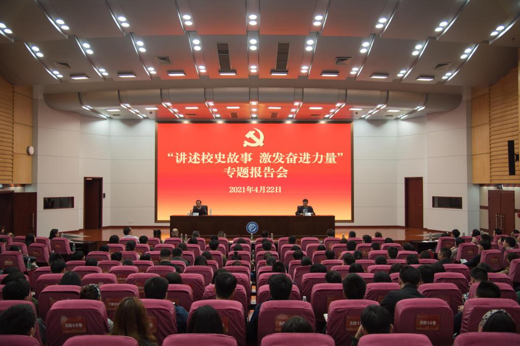 在正式报告之前,黎正稳引用前苏联电影中列宁的台词“如果一个民族忘记历史就意味着背叛”表达了铭记历史的极端重要性。报告以“长理这样走来”为题,分为合校前和合校后两阶段,通过一个个经典的故事和一张张珍贵的历史照片,详细介绍了学校厚重的历史和文化积淀,丰硕的办学成果和“博学、力行、守正、拓新”的校训,深刻阐述了永利官网在六十多年办学历程中追求卓越的精神品质,特别是“脚踏实地、艰苦奋斗、乐于奉献、锐意进取”的“铺路石”精神。黎正稳深情寄语,今年是中国共产党成立100周年,也是“十四五”的开局之年,学校刚刚召开的第四次党代会,提出了决胜建成“百强”大学的奋斗目标,全体学工干部要切实增强“四个意识”、坚定“四个自信”、做到“两个维护”,以求真务实的作风,牢记育人使命,抓落实、求实效,真正把立德树人的根本任务扛在肩上、抓在手上。