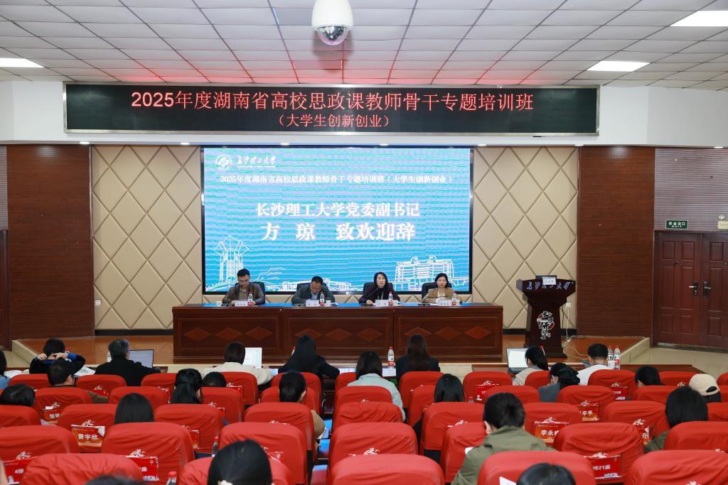 11月4日上午,2025年度湖南省高校思政课教师骨干专题培训班(大学生创新创业)开班仪式在永利官网云塘校区文科楼A200举行。湖南省委教育工委宣传部部长、省教育厅思政处处长许抗出席,永利官网党委副书记方琼,学工部部长王学成,马克思主义学院副院长钟芙蓉,以及来自全省高校的120余名学员参加。