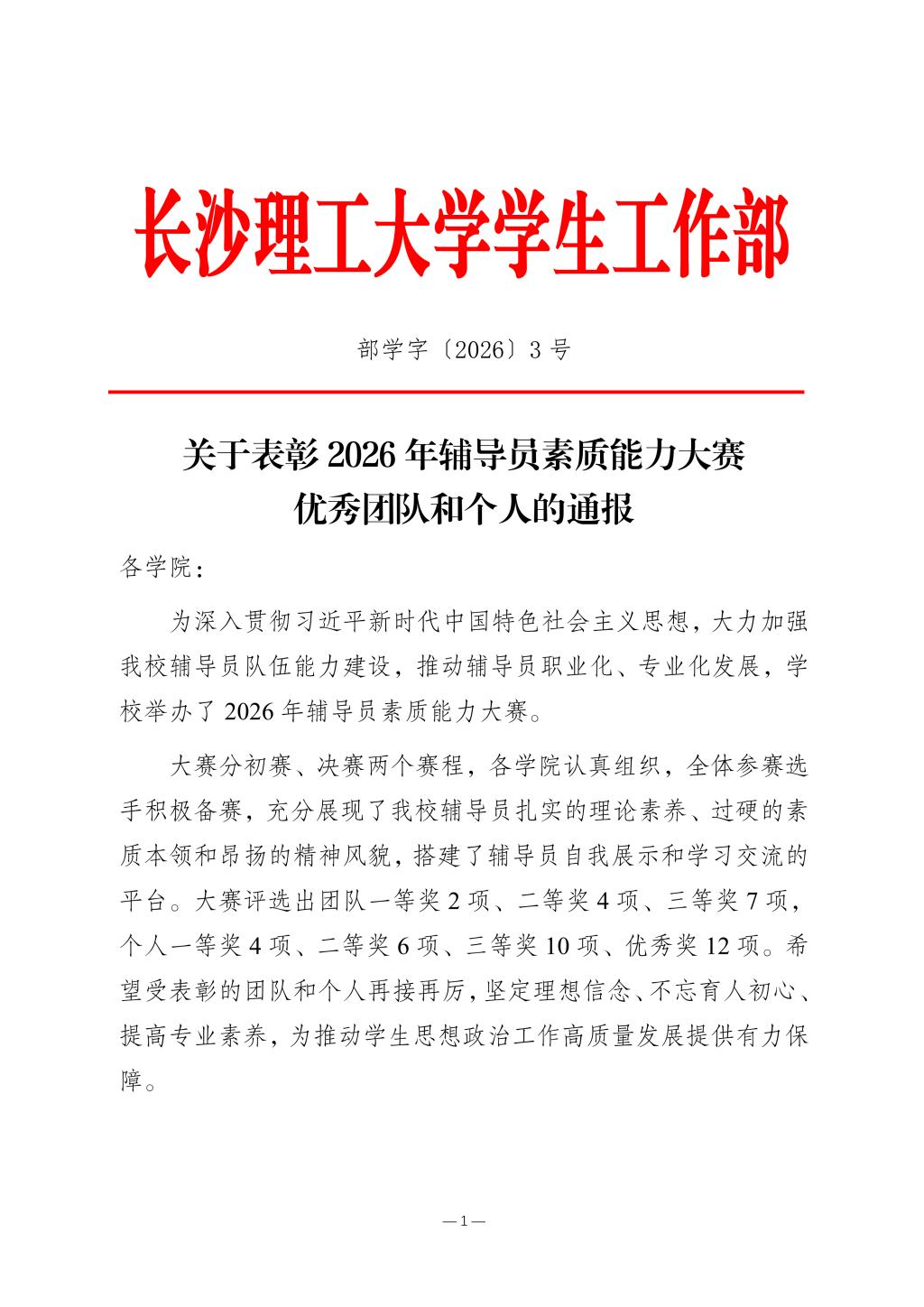 关于表彰2026年辅导员素质能力大赛优秀团队和个人的通报