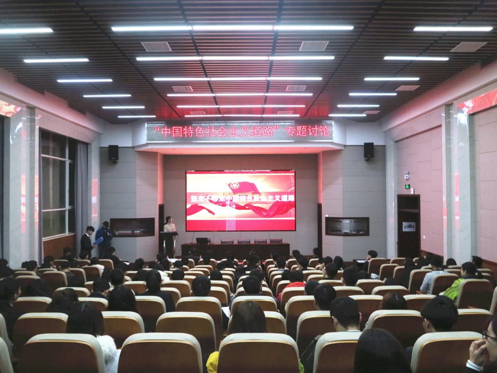 12月14日晚,永利官网第八期青年马克思主义培训班以“中国特色社会主义道路”为专题课程的讨论在工科二号楼如期举行,校党委副书记邹宏如、马克思主义学院教授梁建新共同为青马班学员授课。