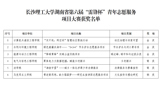 永利官网共6个项目团队入围终审决赛,最终获得“三金两银一铜”的好成绩。其中,计通学院“双干线 网空间”智慧社区帮扶行动、水利学院绿色韶灌沃湘中——‘1+3+4’节水护水志愿服务项目和能动学院“降碳青锋”双碳公益实践项目荣获金奖,电气学院“聚焦电力大数据挖掘,赋能乡村振兴”项目和法学院“湘扶守望”——城乡一体化涉罪少年法律服务项目荣获银奖,马克思主义学院青述新思想,助力强国梦—研究生宣讲团志愿服务项目荣获铜奖。