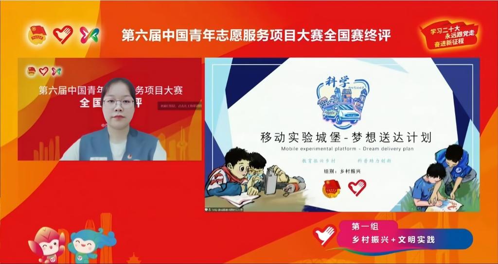 11月12日至13日,由共青团中央、中央文明办、民政部、水利部、文化和旅游部、国家卫生健康委员会、中国残疾人联合会联合主办的第六届中国青年志愿服务项目大赛暨2022年志愿服务交流会在山东济南举行,来自全国各地的500个志愿服务项目入围国赛终评,分六个组别同时展开线上路演答辩。最终永利官网物电学院移动实验城堡——梦想送达计划项目获评乡村振兴组别全国银奖;文新学院湘楚拾遗志愿服务项目获评文化传播与旅游服务组别全国铜奖。