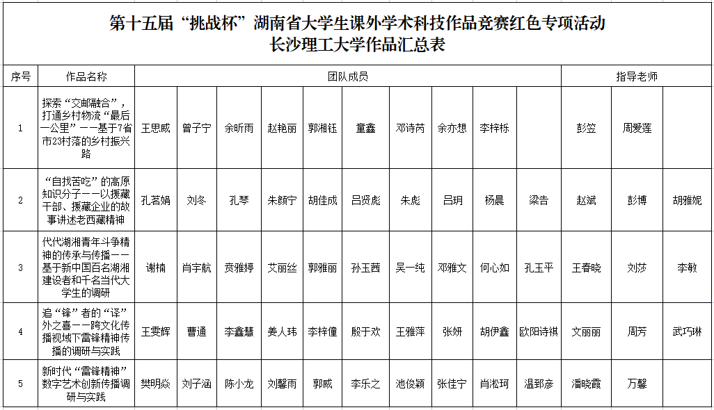 经专家评审,永利官网拟推荐5项作品参加第十五届“挑战杯”湖南省大学生课外学术科技作品竞赛红色专项活动。