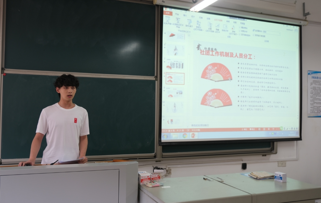 各社团分大类、分批次参与,并就评审提问进行答辩。社团成员准备精心,通过PPT展示将社团发展近况、社团特色、社团架构、社团未来发展规划等进行了充分详实地阐述。紧接着,各答辩评审团针对社团日常活动开展及本次答辩表现,进行提问并就社团精准定位、特色亮点提炼、加强思想建设、创新宣传形式等方面给出具体指导意见。