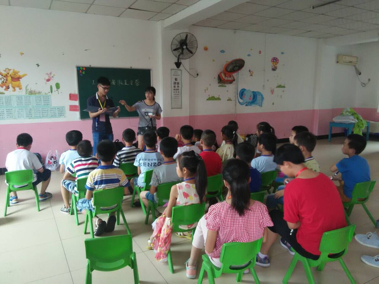 在夏令营场地(爱上幼儿园),志愿者与孩子们相互做了一个简单的自我介绍,并将孩子们分组,然后由志愿者指导各小组孩子写暑假作业,孩子们在“新老师”的指导下认真地完成了该时段的暑假作业。