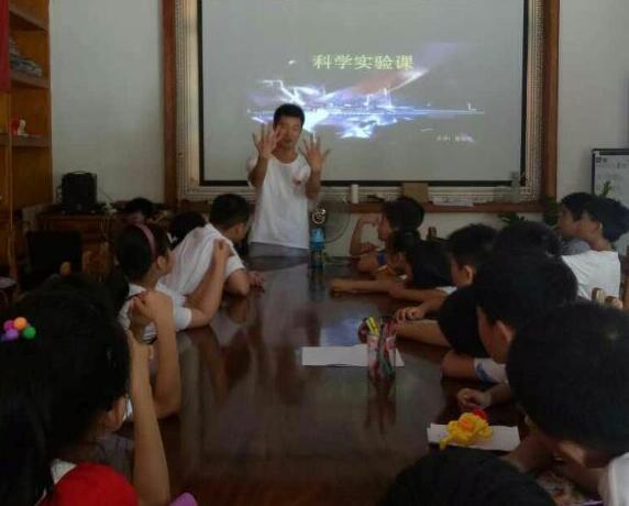 7月9日上午,数统学院赴白沙镇社会实践团组织关爱儿童暑期夏令营科学实验课堂学习,本次课堂学习由志愿者崔培东主讲,其余志愿者协助。