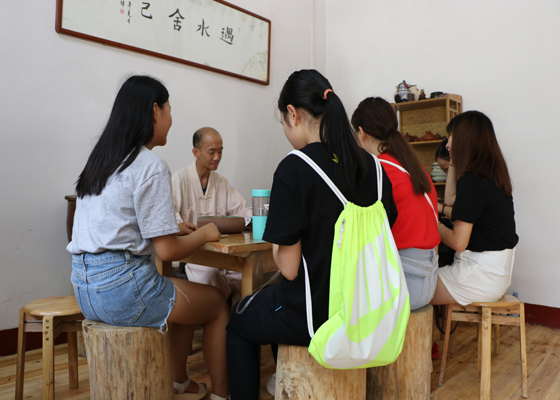 古朴的寺庙让人们感到宁静,实践团的成员们有幸见到耀归大师,他教授队员们如何品禅茶。