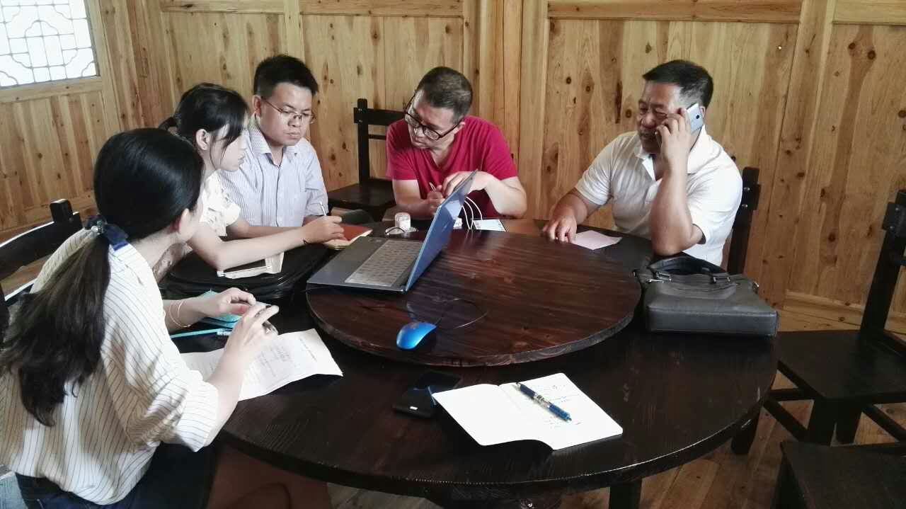 7月11日支农实践团志愿者一行与坪溪村干部及驻坪溪村扶贫办的工作人员洽谈旅游网站建设事宜,省教育厅驻坪溪扶贫办颜慧林处长,坪溪村村委梁主任,扶贫办苏学愚副教授出席。