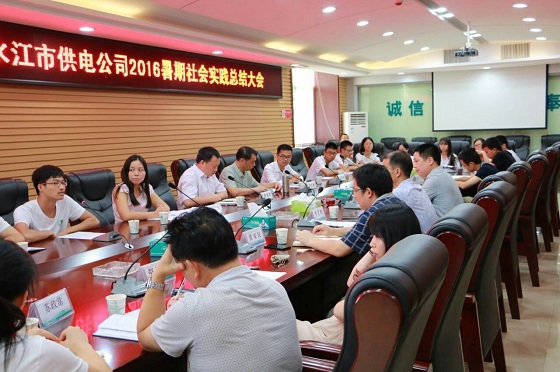会上,公司总经理伍贤和首先对国网冷水江供电公司做简单介绍,并对实践团成员给公司带来的活力与帮助表示感谢。伍贤和总经理与同学们互勉道:“把简单的事重复做,你就是专家;把重复的事用心做,你就是赢家;只想不做,那就是梦想家。祝愿大家都能成为人生赢家。”会场掌声不绝。接着,曾祥君院长对学院做了简单介绍,对实践团成员的实践成果表示充分肯定并希望同学们能把这种实践精神带回学校,影响和激励更多大学生。丁丹书记对实践团队20来天的成果做总结汇报;带队老师彭怡峰对公司为实践团成员提供的良好平台表示由衷感谢;实践团全体成员依次表达了对公司的感谢,并分享了自己的收获。公司各部门主任也分别对实践团15名成员的工作表示肯定。