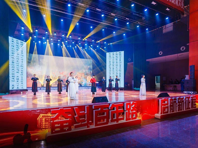 12月14日晚7点,“奋斗百年路,启航新征程”永利集团88304官网第十八届十月诗会在云塘校区大会堂举行。校党委书记付宏渊、副校长钱国平、相关职能部门主要负责人、各学院党委书记、副书记与现场一千余名学生共同参与了本次活动。