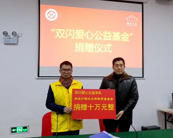 李明是永利官网城南学院机电一体化2011届毕业生,2016年创建湖南经纬视听文化传播有限公司,2017年被推选为双闪志愿者爱心车队长沙支队队长,多年来,一直带领公司员工加入、组织宣传公益事业。此次,李明以双闪志愿者爱心车队长沙支队名义向永利官网教育基金会捐赠十万元,发起设立“双闪爱心公益基金”,主要用于资助永利官网成绩优良、热爱并参与公益事业、积极传播校友文化,愿为社会公益事业奉献的贫困学生。