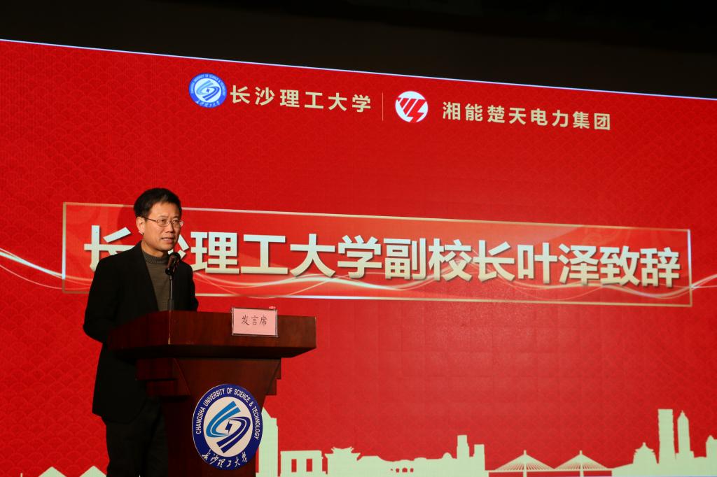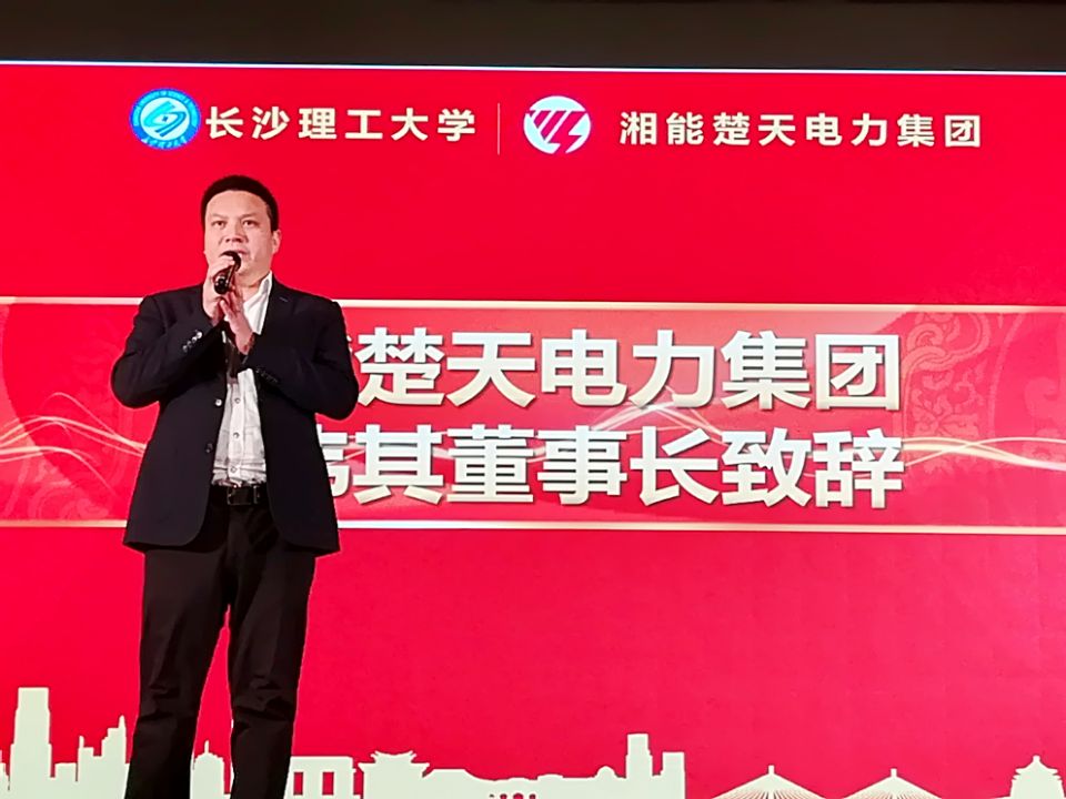 会上还播放了湘能楚天电力集团宣传视频。陈伟其代表企业致辞,他讲述了湘楚与长理的缘分,提出双方深化产学研战略合作的三个阶段,并当场承诺,给长理学子提供免费的实习和学习机会。随后,湘楚集团依次与经管学院、电气学院签署产学研战略合作协议并举行了现场捐赠仪式。