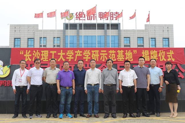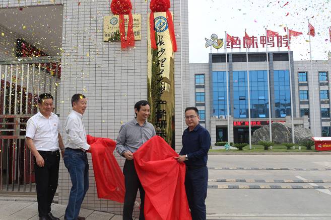5月4日,永利官网产学研示范基地、休闲卤制食品创新研究院在绝味食品股份有限公司旗下湖南阿瑞食品有限公司正式挂牌。湖南省食品行业联合会荣誉会长刘送保,副校长杨伟军、国家级宁乡经开区党工委副书记黄瑶、绝味食品董事赵雄刚共同为基地和研究院揭牌。成果转化中心常务副主任李岳林、科研部副部长王建辉、绝味食品董事会秘书彭刚毅等参加了揭牌仪式。