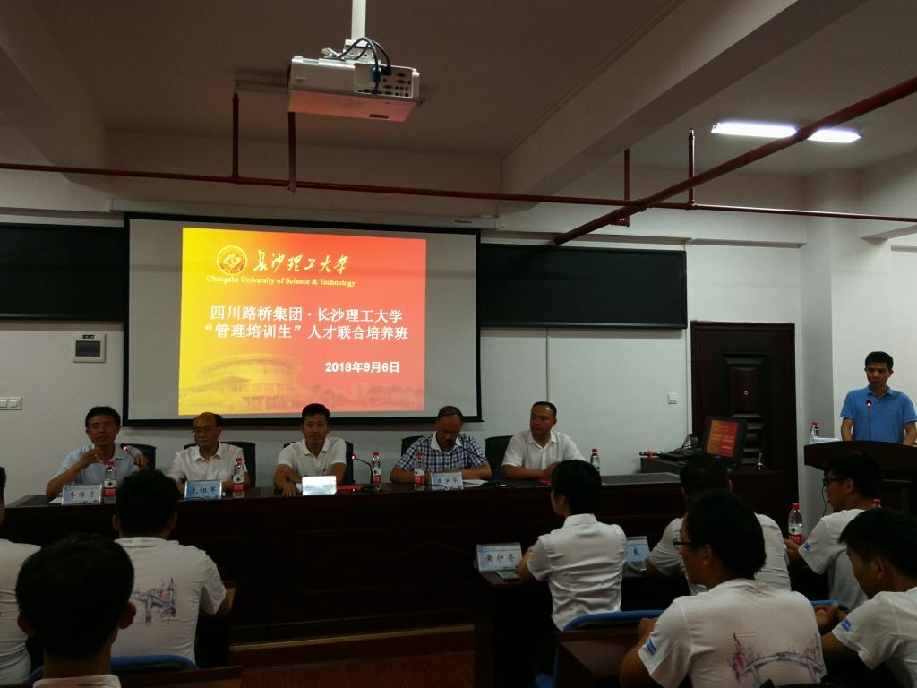 9月6日下午,由四川路桥集团与永利官网联合举办,土木工程学院承办的首届“管理培训生”人才培养班开班仪式在云塘校区新能源大楼302会议室举行。四川路桥集团党委副书记黄洪华、人力资源部经理龙祖军、公路隧道分公司党委书记李平、人力资源部招聘处处长黄炉香,永利官网副校长刘扬、土木工程学院院长李传习、招生就业处副处长贺良以及培训班全体学员共50余人出席了开班仪式。仪式由土木工程学院党委副书记、副院长王煜坤主持。