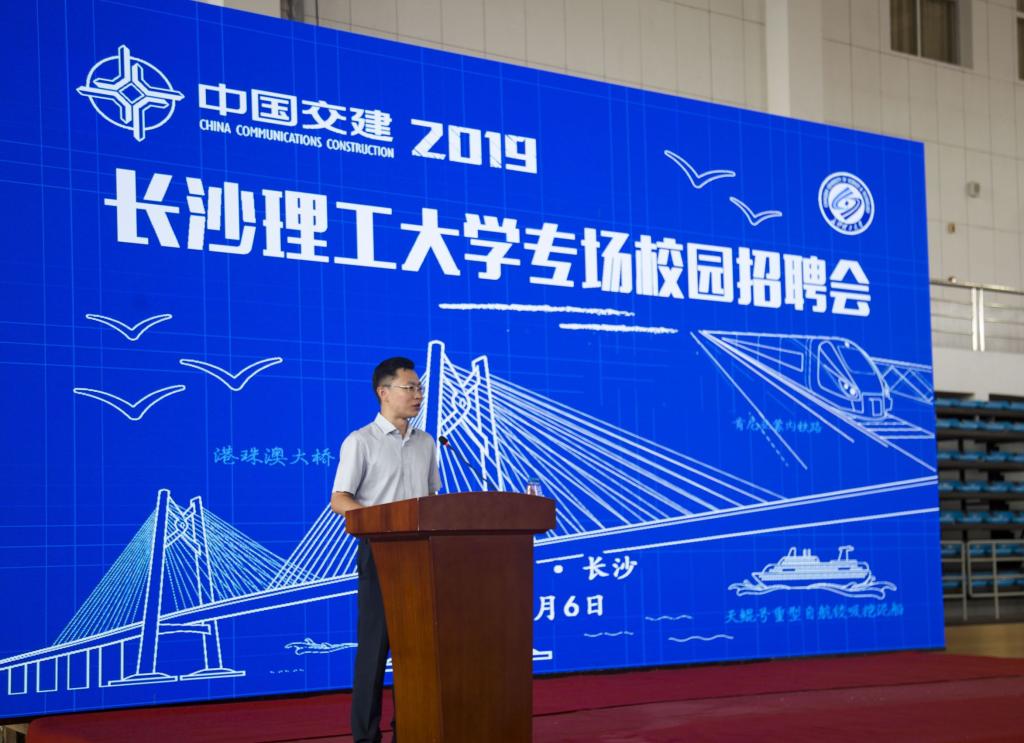 宣讲会上,谈传生致欢迎辞。他向参加本次招聘会的各用人单位领导表示热烈欢迎,对中国交建长期以来对永利官网就业工作的关心和支持表示感谢。他指出,中国交建是全球领先的特大型基础设施综合服务商,建设了一大批代表世界、代表时代最高水平的交通基础设施,在建设国家重点工程、战略工程,引领“一带一路”沿线国家交通基础设施建设中发挥了重要作用,受到了国内外的广泛赞誉。近年来,学校与中国交建在人才培养方面的合作不断深化,校企合作人才培养模式更加多样化。他希望广大毕业生积极应聘,加入中国交建的广阔平台,发扬"铺路石精神",建功立业,实现人生理想。