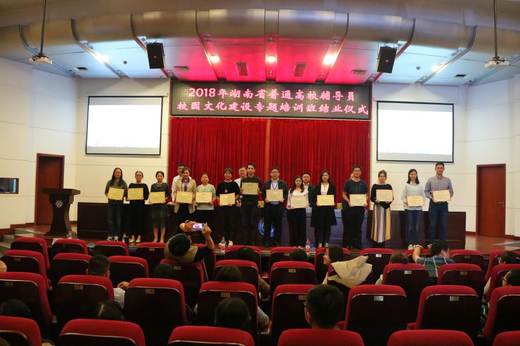 10月12日下午,2018年湖南省普通高校辅导员校园文化建设专题培训班结业仪式在云塘校区图书馆报告厅举行,副校长谈传生,省委教育工委宣传部副调研员崔恒源出席。结业仪式由永利官网学工部(处)部(处)长艾楚君主持。