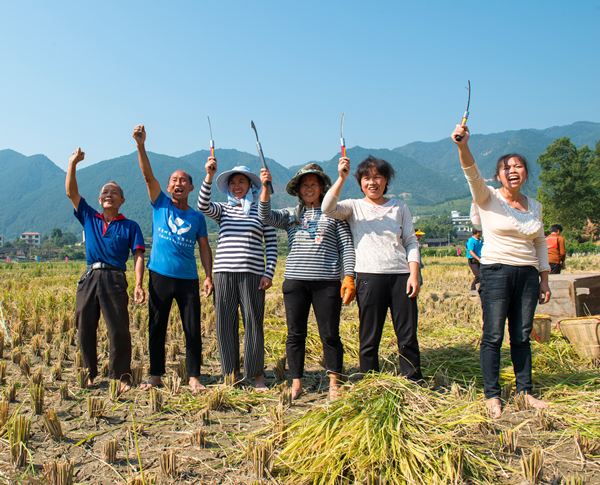 “我和我的祖国,一刻也不能分割,无论我走到哪里,都流出一首赞歌……”9月28日上午,在新宁县水庙镇枧杆山村首届水稻收割节活动的现场,来自全村12个村民小组的村民和县乡领导以及永利官网驻村扶贫工作队队员共300余人,高唱《我和我的祖国》,用丰收的喜悦向祖国深情告白,共同祝愿伟大祖国繁荣昌盛。