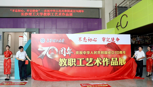金秋九月,翰墨飘香、丹青溢彩,9月30日上午,由校工会、宣传部主办,设计艺术学院承办的“不忘初心 牢记使命——庆祝中华人民共和国成立70周年永利集团88304官网教职工艺术作品展”在云塘校区艺术楼开幕。校党委书记付宏渊、校长曹一家,党委副书记邹宏如,副校长谈传生、纪委书记胡永乐、党委委员付嫦娥、方琼出席,各单位主要负责人、教师代表200余人参加开幕式。付宏渊、曹一家为展览揭幕。