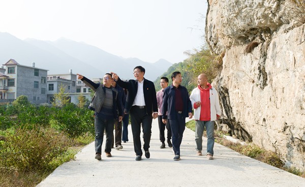 11月8日,校党委书记付宏渊,党委副书记邹宏如,党委委员、党委组织部部长齐路良以及相关职能部门负责人一行前往永利官网扶贫点新宁县水庙镇枧杆山村调研指导驻村精准扶贫工作。