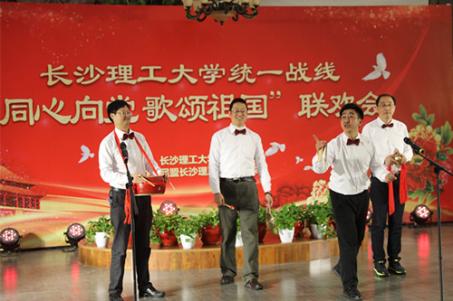 11月19日下午,由校党委统战部主办、民盟长理委员会承办的统一战线“同心向党 歌颂祖国”联欢会在云塘校区举行。湖南省委统战部副部长、省社会主义学院党组书记邓焕生,民盟湖南省委专职副主委胡颖,湖南省委统战部干部处副处长李颖杰、民主党派工作处副处长刘宇、知识分子工作处调研员唐盛华、民主党派工作处副调研员冯胜强、知识分子工作处主任刘鹏,民盟湖南省委组织处处长徐智、参政议政处处长邓彬彬,天心区区委常委、统战部部长刘向、常务副部长胡浩,永利官网党委副书记邹宏如,党委委员、纪委书记胡永乐,党委委员、组织部部长齐路良,以及部分职能部门和学院的领导现场观看了联欢会。