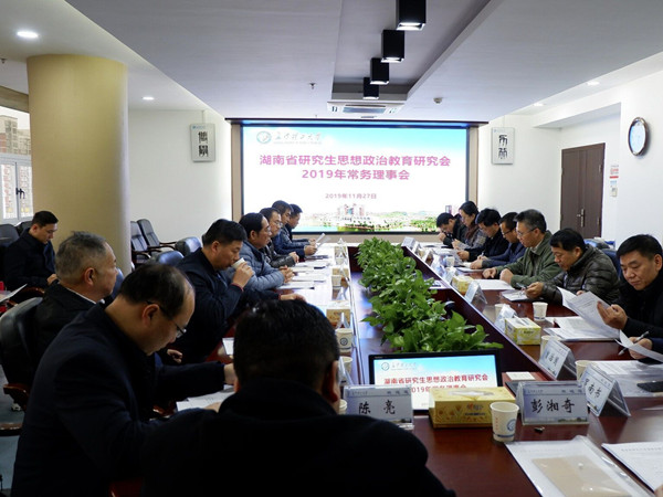 会上,审议通过研究会秘书长变更事宜,确定湖南农业大学研究生院院长兼研究生工作部部长谢方平为新任研究会秘书长,新增衡阳师范学院为会员单位;确定评选2019年优秀单位和个人以及会费收取相关事宜;讨论通过2019年学术年会主题及各项议程等具体事宜;确定2020年两次常务理事会承办单位分别为湖南工业大学和湖南中医药大学、学术年会承办单位为湖南科技大学;最后商议讨论了2020年工作调研和培训相关事宜。