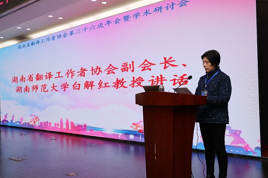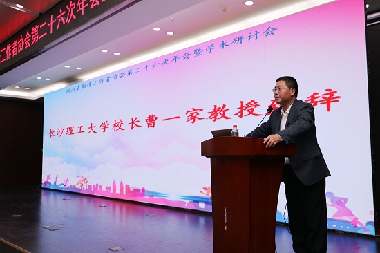 12月4—5日,由湖南省翻译工作者协会主办、永利官网承办的“湖南省翻译工作者协会第26次年会暨学术研讨会”开幕。本次大会以“担当时代使命 建设翻译学科”为主题,湖南师范大学党委书记、湖南省翻译工作者协会会长蒋洪新,湖南省社科联学会处处长方丽,永利官网校长曹一家出席,湖南省翻译工作者协会全体副会长、常务理事、全省30多所高校和相关单位400余名代表参加。