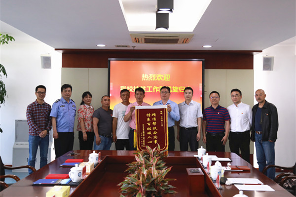 枧杆山村党支部书记兼村主任杨忠祥发言。他表示,此次带领村“两委”和村民代表送扶贫工作队回学校,是受全体村民所托感激学校三年的帮扶工作。正是有了学校的全面帮扶,枧杆山村才能成为远近闻名的美丽乡村、文明乡村、示范乡村,才能开创出走在乡村振兴前列的大好局面。之后,他代表枧杆山村为学校送上了“精准帮扶办实事,情系百姓暖人心”的锦旗。