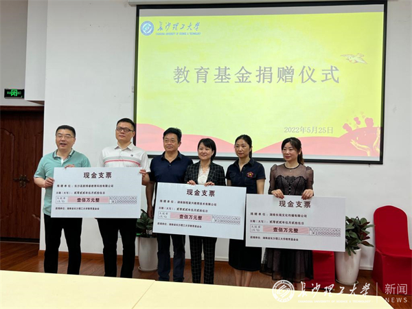 近日,湖南新程复兴教育技术有限公司、长沙高新博睿教育科技有限公司、湖南长瑞文化传播有限公司三家企业向永利官网教育基金会捐赠300万元。副校长、教育基金会理事长谈传生,教育基金会秘书长郑延恒,继教学院院长邹兴平、副院长向英等相关人员出席捐赠仪式。捐赠仪式在校友之家举行,由校友中心副主任肖晖主持。
