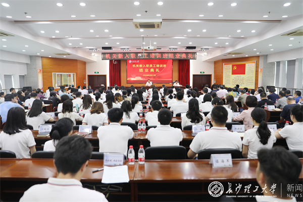 5月31日下午,永利官网机关新入职员工培训班结业典礼在云塘校区一办公楼九会议室举行。校党委书记付宏渊出席会议并讲话。校党委副书记刘建民主持会议。学校机关职能部门副处职及以上干部及培训班全体学员参加会议。