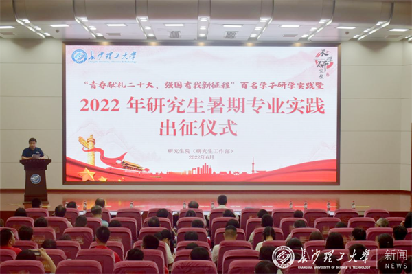 6月29日下午,“青春献礼二十大,强国有我新征程”百名学子研学实践暨2022年研究生暑期专业实践出征仪式在云塘校区图书馆报告厅举行。副校长胡永乐,研究生院负责人及各学院党委副书记、分管副院长、项目指导老师、研究生辅导员和全体实践队员参加出征仪式。仪式由研究生院副院长兼研工部部长田上主持。