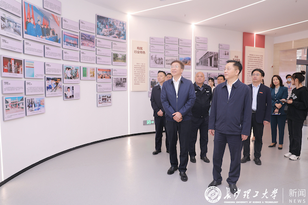 夏智伦一行还专程走访调研了学校“三全育人”与工程实践教育基地,深入了解了学校历史沿革、发展现状和“三全育人”工作及工程实践教育开展情况。他指出,“三全育人”与工程实践教育基地,站位高、形式新、内涵丰富,对学校“三全育人”工作和工程实践教育情况进行了全面总结和系统展示,整个展览既是一堂内容鲜活的思政课,也是一门富含思政元素的工程实践课,是创造性开展大学生思政教育与工程实践教育的一次有益尝试。他对学校长期以来坚持培根铸魂,将立德树人贯穿教育教学全过程的做法表示了肯定。他强调,学校要充分发挥“三全育人”与工程实践教育基地的作用,将爱国主义教育融入思政教育中,充分彰显学校工程实践教育优势,引导广大青年教师坚持为党育人、为国育才,激励更多学生发扬“主人翁”精神,积极服务湖南经济社会高质量发展,为实现中华民族伟大复兴的中国梦而不懈奋斗。