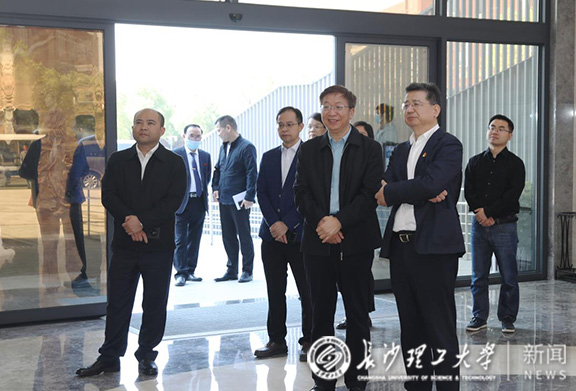 庄大力一行先后前往金盆岭校区和云塘校区,实地查看深入了解学生宿舍及食堂建设等情况,对学校基础设施建设给予了充分肯定。在洞庭湖水环境治理与生态修复湖南省重点实验室和“电网输变电设备防灾减灾”国家重点实验室分室考察时,庄大力听取了实验室建设情况及成果汇报,详细询问了科研团队相关技术原理及转化应用情况,对团队取得的丰硕科研成果表示赞许,鼓励科研团队要全面落实“三高四新”战略定位和使命任务,瞄准国家重大需求持续发力,积极服务地方经济社会发展。