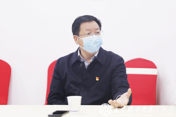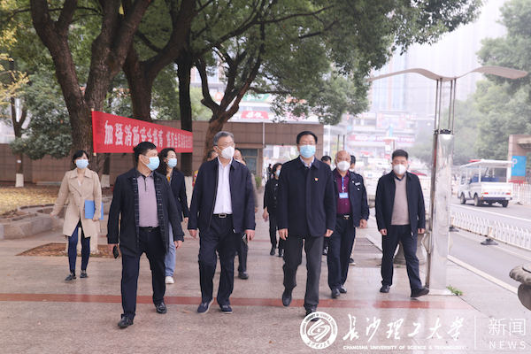 11月26日上午,校党委书记付宏渊在副校长谈传生的陪同下,率领党政办、宣传部、防控办、学工部(处)、研工部、保卫处、后勤中心等有关部门负责人赴金盆岭校区检查部署疫情防控工作,看望慰问一线工作人员和师生志愿者。