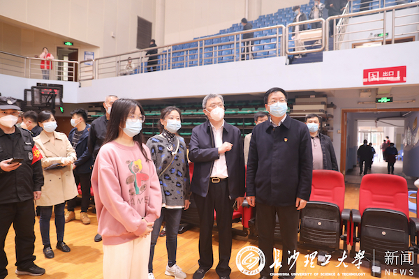 付宏渊一行随后深入金盆岭校区体育馆核酸检测点检查检测人员扫“码”入内检测情况和志愿者工作现场情况。当看到14个核酸检测组正在紧张有序开展健康码核验与核酸采集工作,师生们自觉遵守一米线间隔,志愿者熟练引导现场人员流动等情况时,付宏渊给予了充分肯定,要求全体学工干部、后勤员工务必要下沉到广大师生中去,做到人对人、点对点、环环相扣、责任到户,充分发动、宣传、组织好全体师生参与核酸检测,确保“不漏一人”。