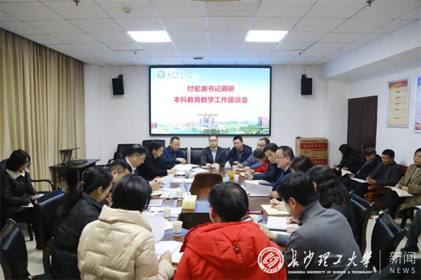 2月24日下午,校党委书记付宏渊带队来到教务处调研指导本科教育教学工作,党政办、组织部、政策研究与督查室等部门负责人陪同调研,教务处科级及以上干部参加调研会议。